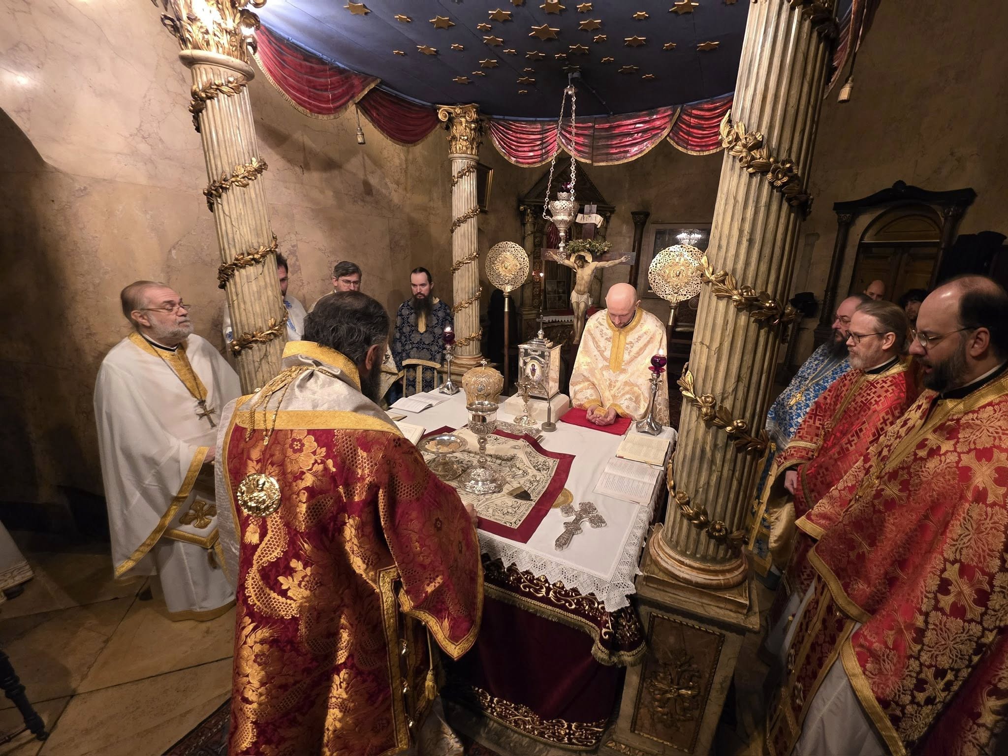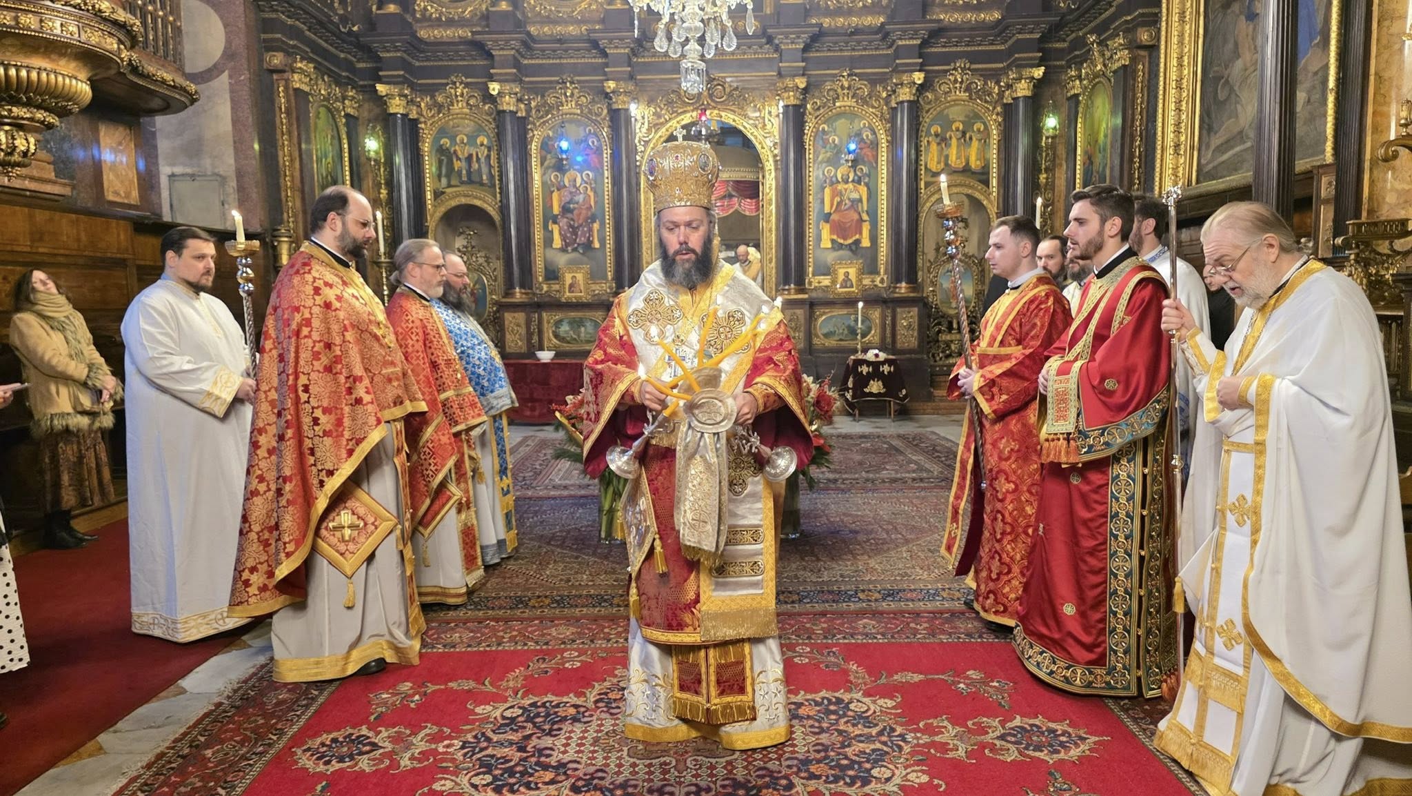 Am Samstag, den 27. Dezember 2025, an dem unsere Kirche das Gedächtnis des Heiligen Erstmärtyrers und Erzdiakons Stephanus begeht, stand Seine Eminenz Metropolit Arsenios von Austria der Erzbischöflichen Göttlichen Liturgie in der Kathedrale zur Heiligen Dreifaltigkeit in Wien vor. Im Altarraum beteten Seine Exzellenz Bischof Maximos von Aristi und Bischofsvikar Ioannis Nikolitsis mit. Liturgisch zur Seite standen Seiner Eminenz die Archimandriten Ilias Papadopoulos, Athanasius Buk und Bartholomäus Ungureanu, der Erzpriester Nikolaus Rappert, die Priestermönche Iakovos Giannopoulos, Ephräm Lomidze und Andreas Bollas sowie die Diakone Sava Kucenko und Georgios Meleshko. Während der Göttlichen Liturgie spendete Seine Eminenz Vater Sava die Weihe zum Presbyter.