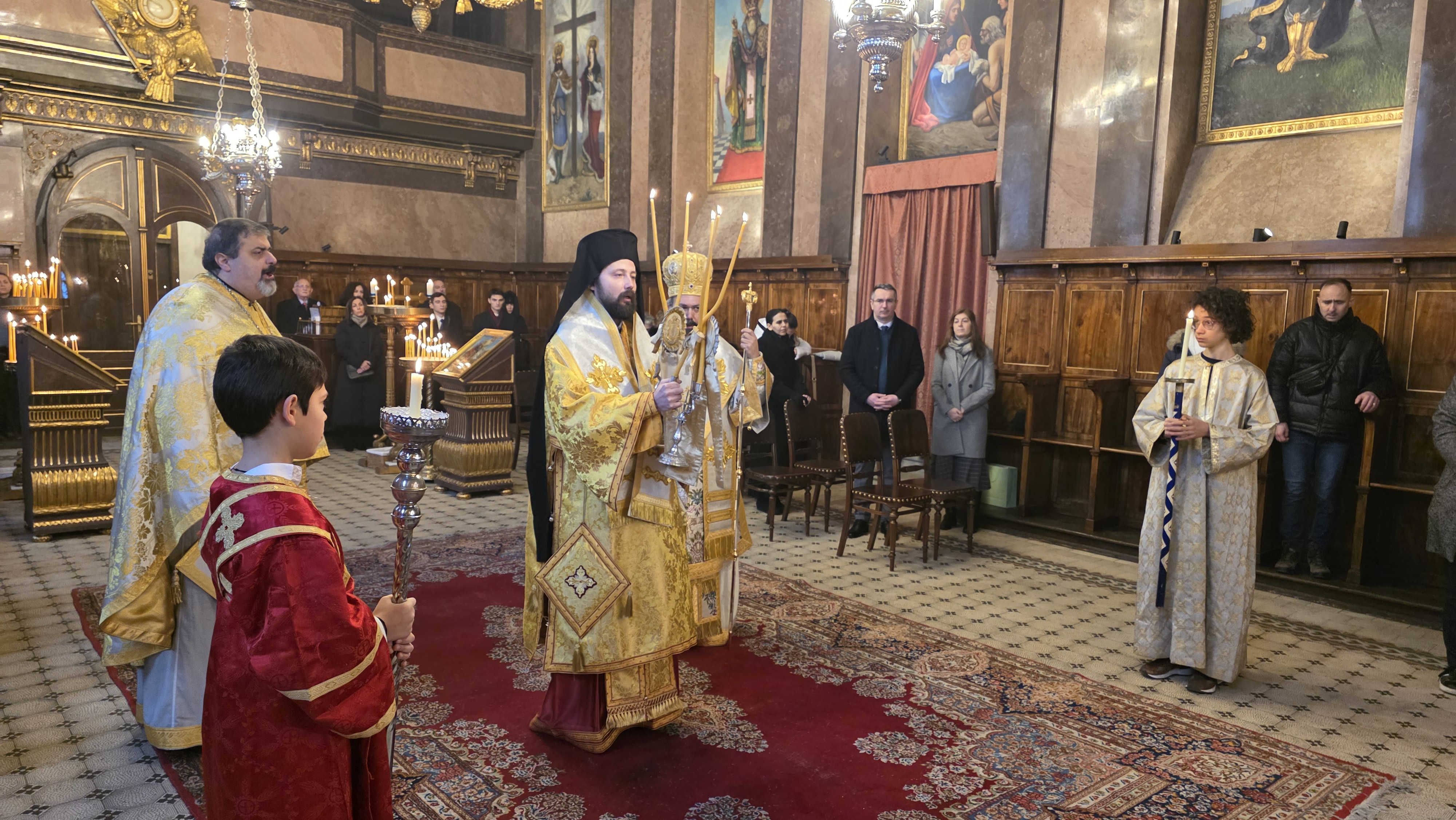 Am Donnerstag, den 1. Januar 2026, am Fest der Beschneidung unseres Herrn Jesus Christus und des Gedenkens an unseren Heiligen Vater Basilius den Großen, Erzbischof von Cäsarea in Kappadokien, wurde die Erzbischöfliche Göttliche Liturgie in der historischen Kirche zum Heiligen Georg in Wien mit besonderer Feierlichkeit zelebriert. Der Göttlichen Liturgie stand Seine Eminenz Metropolit Arsenios von Austria vor und zelebrierte gemeinsam mit Seiner Exzellenz Bischof Maximos von Aristi. Die Hierarchen begleiteten Erzpriester des Ökumenischen Thronen Ioannis Nikolitsis und Stavrophor Ökonom Aristeidis Ganosis. Im Anschluss an die Göttliche Liturgie und die Doxologie zum Beginn des neuen Jahres begaben sich Klerus und Volk in die Kathedrale zur Heiligen Dreifaltigkeit, wo Seine Eminenz traditionsgemäß die Vasilopita segnete und anschnitt.