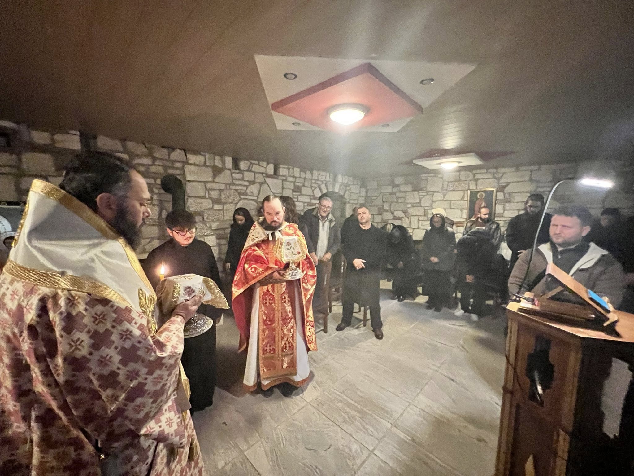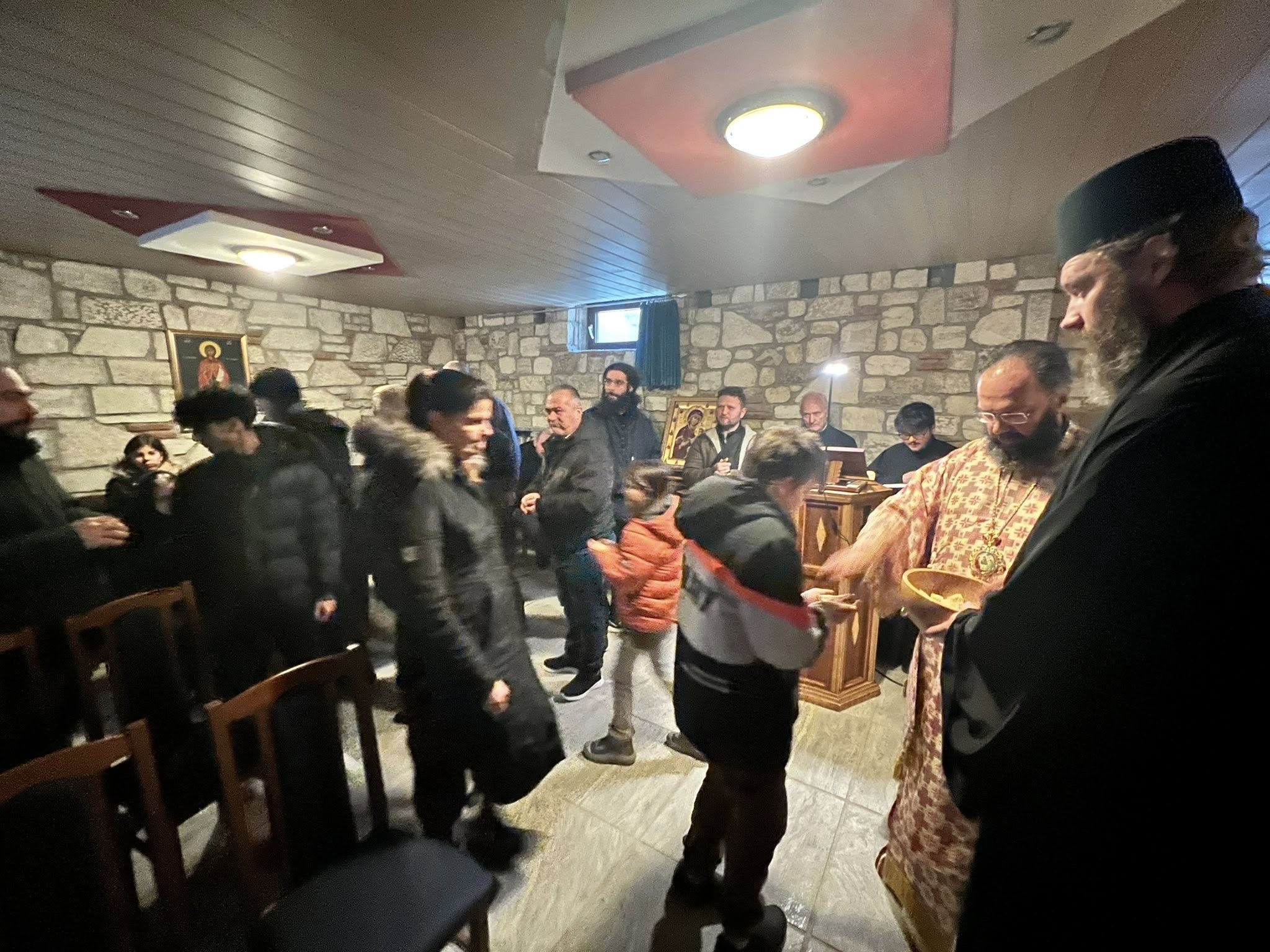 Nach der Göttlichen Liturgie luden die Brüder des Klosters die Pilger in das Archontariki des Klosters ein, wo Süßigkeiten und andere Speisen angeboten wurden, die der Fastenzeit entsprechen, während Seine Eminenz geistige Nahrung darbot, indem er zu den Versammelten über aktuelle Themen sprach.