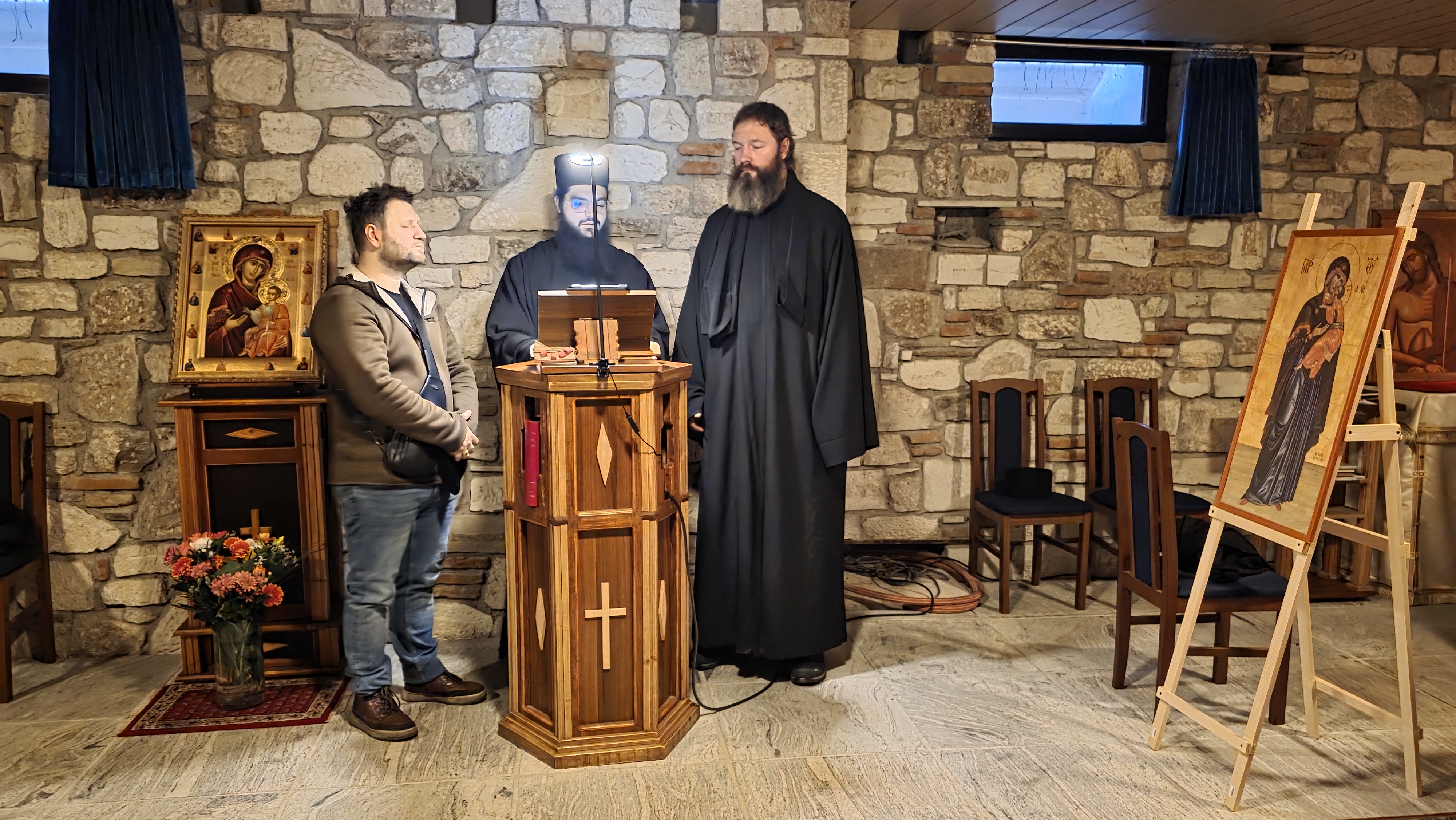 Am Samstag, den 24. Januar 2026, an dem unsere Kirche das Gedächtnis der Heiligen Xenia und ihrer Dienerinnen begeht, stand Seine Eminenz Metropolit Arsenios von Austria der Hierarchischen Göttlichen Liturgie im Kloster Maria Schutz der Gottesgebärerin und des Heiligen Paisios vom Athos in St. Andrä am Zicksee vor. Mit ihm konzelebrierte Seine Exzellenz Bischof Maximos von Aristi. Im liturgischen Dienst stand den Hierarchen der Priester des Klosters, Hieriomonch Andreas Bolla, zur Seite. Nach der Göttlichen Liturgie begaben sie sich gemeinsam mit einer Vielzahl von Pilgern zum nahegelegenen Zicksee, wo Seine Eminenz die Wasserweihe und das Werfen des Kreuzes gemäß der Tradition vollzog. Bei der Zeremonie war auch der römisch-katholische Bischof von Eisenstadt, S.E. Ägidius Zsifkovics, anwesend. Es folgte eine Begegnung mit den Pilgern, wobei Seine Eminenz verblieb und der Bruderschaft die Gelegenheit gab, Gedanken und Überlegungen mit ihm zu teilen.