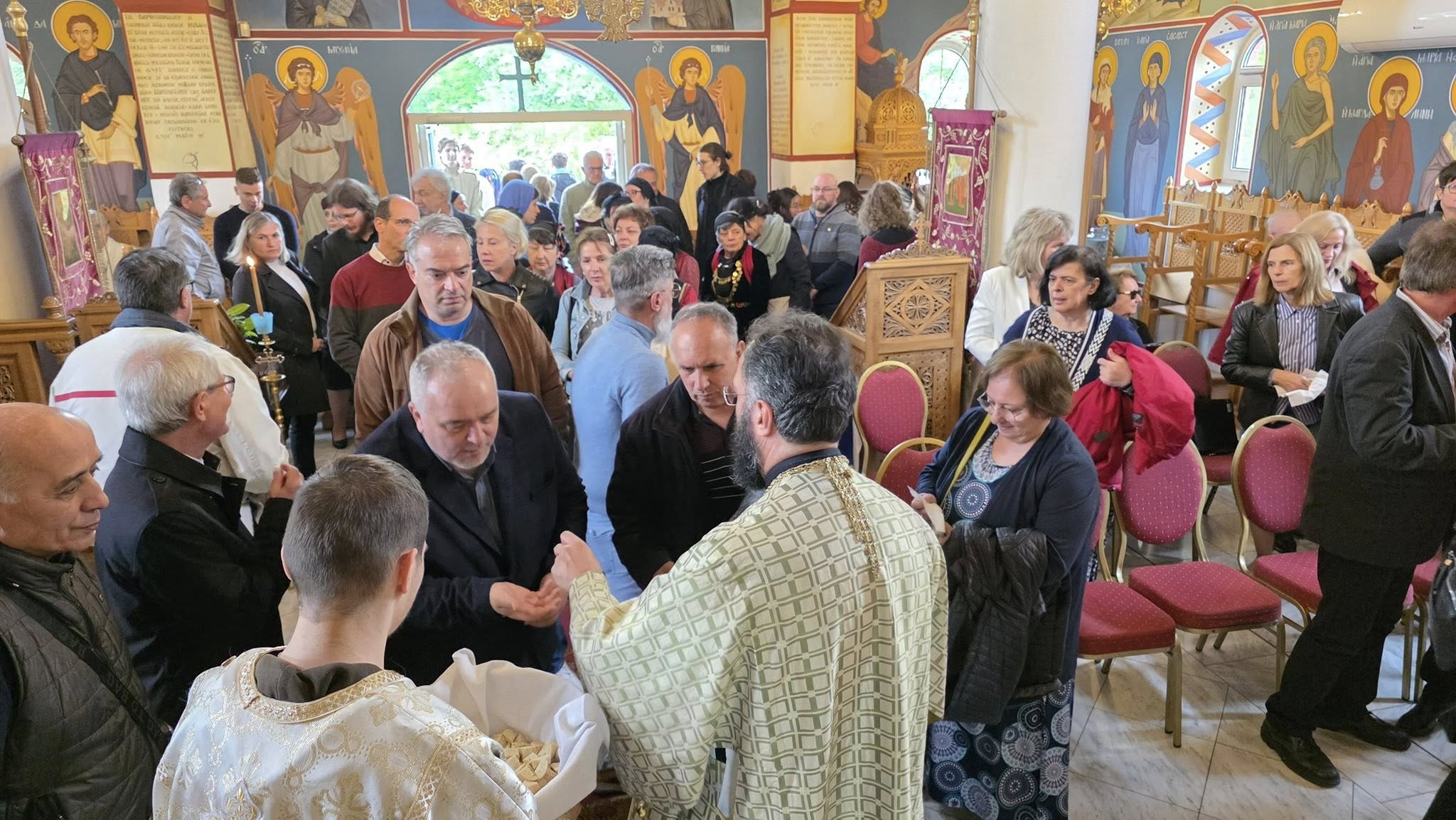 Nach dem Ende der Göttlichen Liturgie hatten die Gläubigen die Gelegenheit, den Segen zu empfangen und mit Seiner Eminenz und den Hierarchen zu sprechen. Es folgte ein Festprogramm im Vorhof der Kirche unter Teilnahme einer Tanzgruppe aus Konitsa sowie ein gemeinsames Mahl. Der Metropolit dankte Vater Prodromos für die Organisation des Festes.