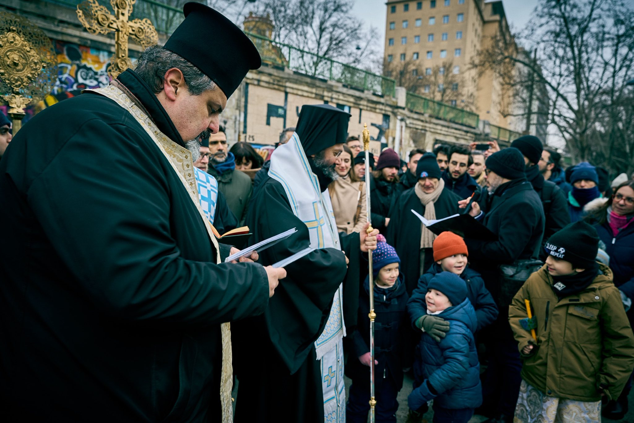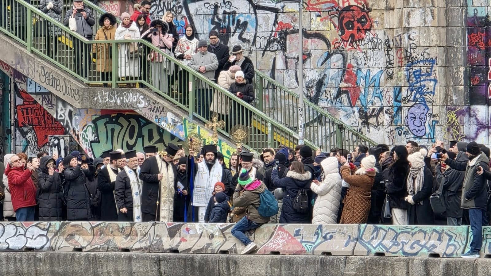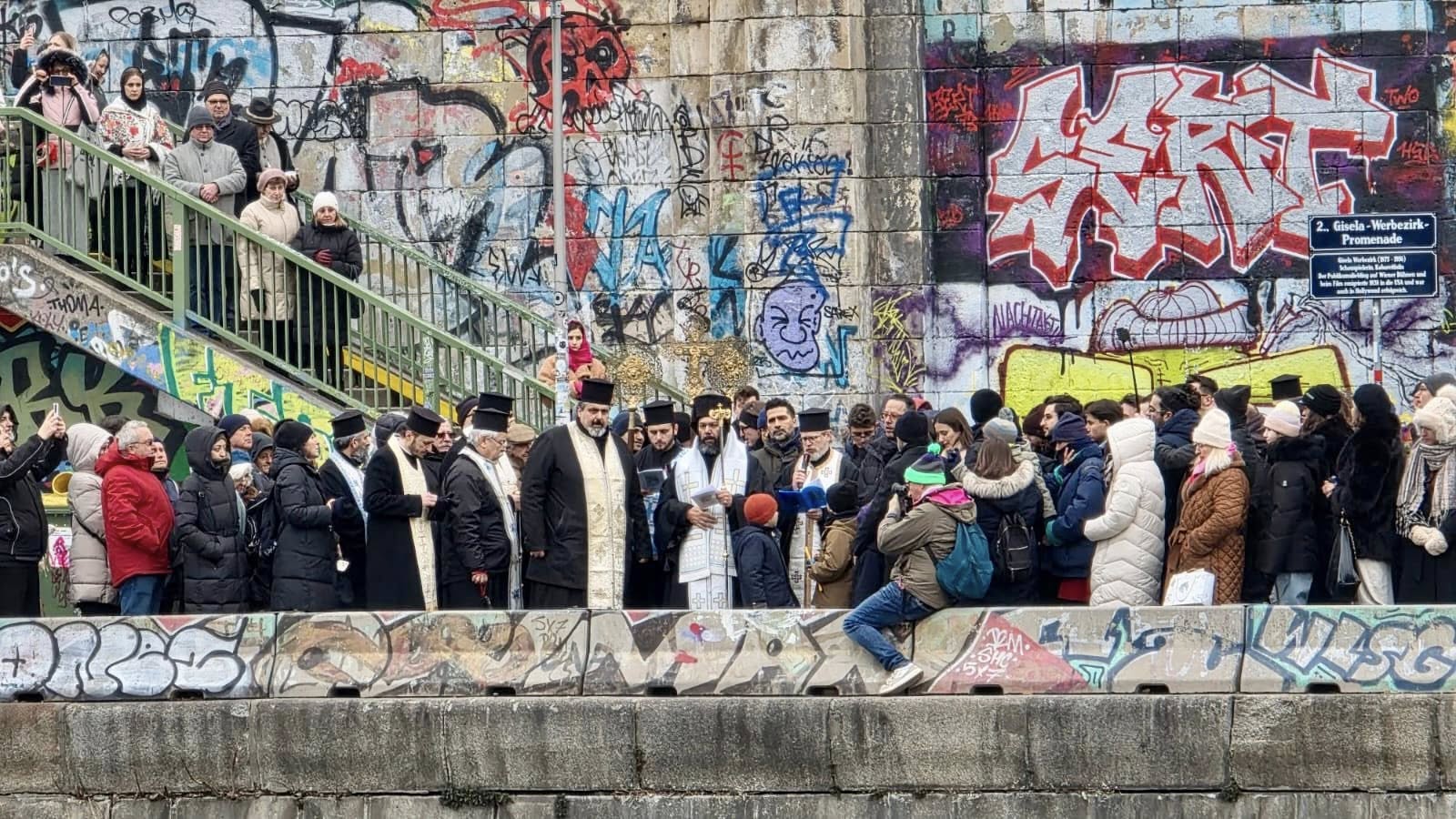 Im Anschluss an die Göttliche Liturgie fand die Große Wasserweihe statt, gefolgt vom traditionellen Eintauchen des Heiligen Kreuzes in die Gewässer des Donaukanals zur Heiligung der Gewässer und der Stadt. Die Gläubigen empfingen das Weihwasser, um ihr Leben und ihre Häuser zu heiligen.