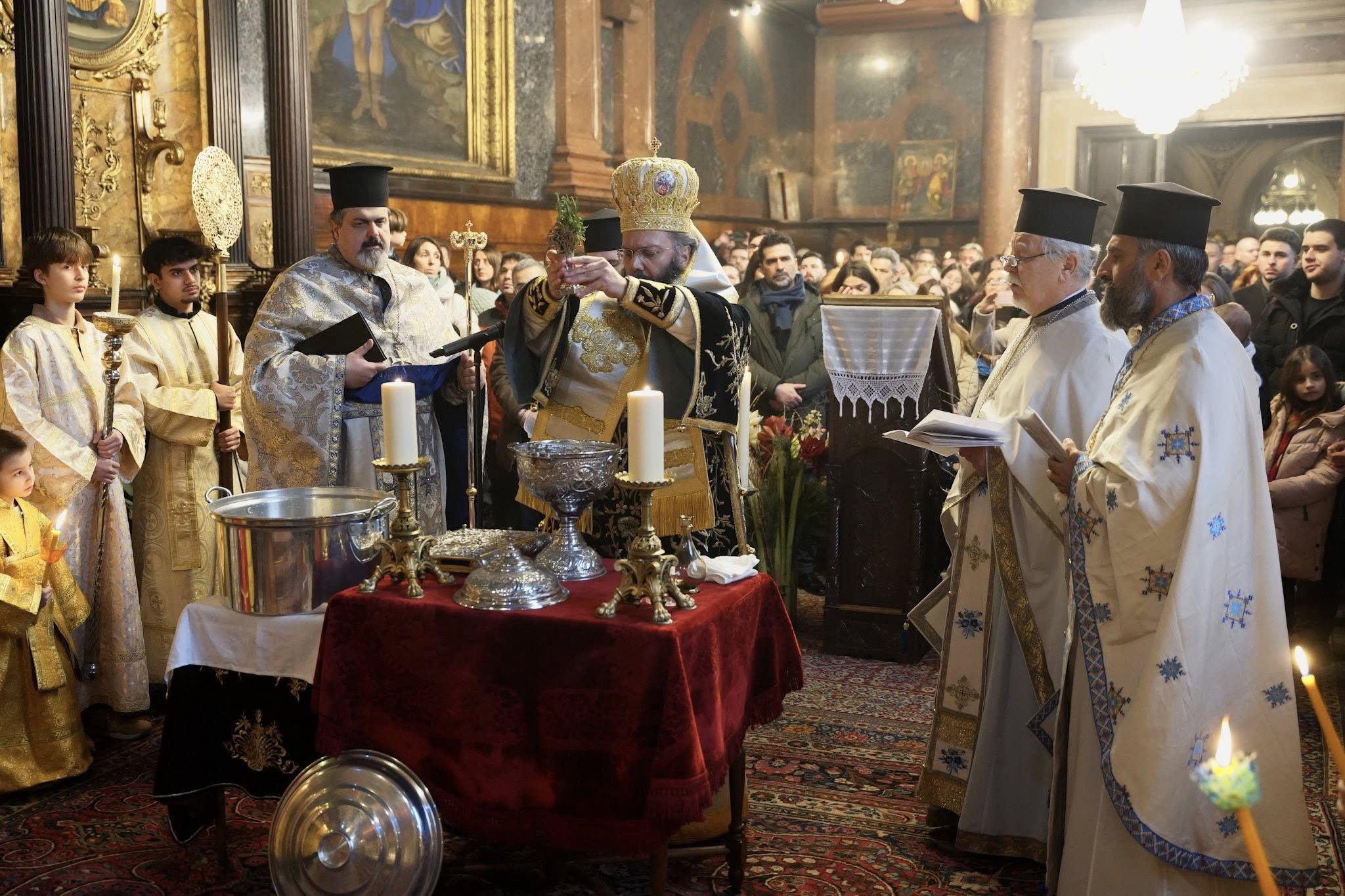 Am Dienstag, den 6. Januar 2026, am großen Hochfest der Heiligen Theophanie, stand Seine Eminenz Metropolit Arsenios von Austria der Erzbischöflichen Göttlichen Liturgie in der Kathedrale zur Heiligen Dreifaltigkeit in Wien vor. Mit Seiner Eminenz konzelebrierten der Erzpriester des Ökumenischen Throns Ioannis Nikolitsis, die Presbyter Oikonomen Alexander Lapin Aristeidis Ganosis und der Diakon Georgios Meleshko. Nach der Liturgie begab sich die Festgemeinde am Donaukanal, wo der Metropolit das Gewässer durch den Einwurf des Heiligen Kreuzes gesegnet hat