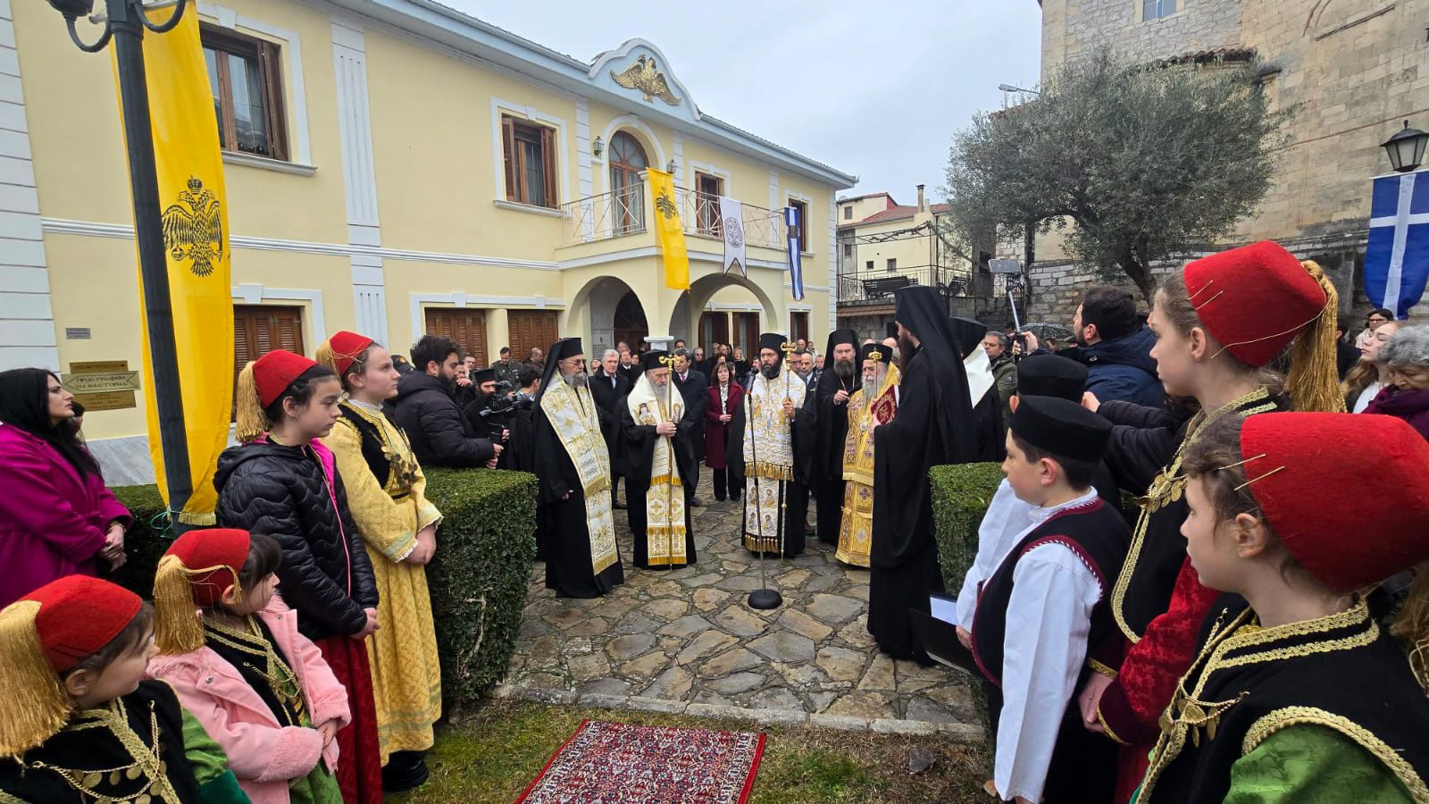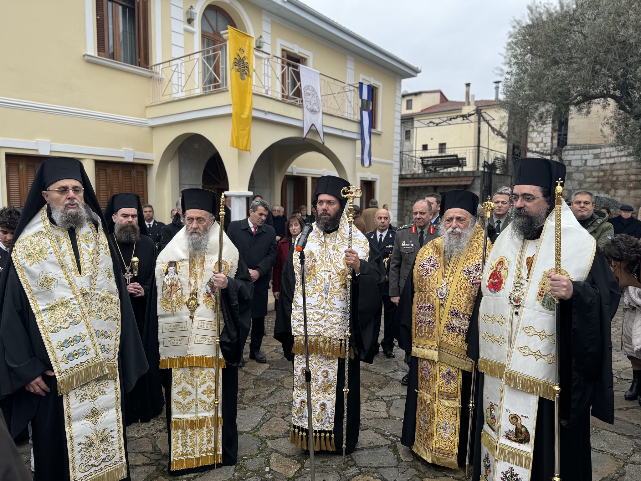 Am zweiten Sonntag des Triodions, dem 16. Februar 2025, an dem in unserer Kirche das Gleichnis vom barmherzigen Vater gelehrt wird, stand Seine Eminenz Metropolit Arsenios von Austria, Exarch von Ungarn und Mitteleuropa, der Göttlichen Liturgie in der Kathedrale der Entschlafung Mariens in Kastoria vor. Mit ihm zelebrierten Ihre Eminenzen Hierotheos von Nafpaktos und St. Blasios, David von Grevena, Kallinikos von Kastoria und Seine Exzellenz Apostolos von Tanagra. Anwesend waren auch Amtsträger und Vertreter der Politik, die Teilnehmer der Konferenz und das gläubige Volk. Nach der Göttlichen Liturgie wurde ein Totengedenken für Metropolit Germanos von Amaseia und für alle verstorbenen Metropoliten von Kastoria gefeiert und anschließend wurden Kränze am Denkmal von Metropolit Germanos niedergelegt.