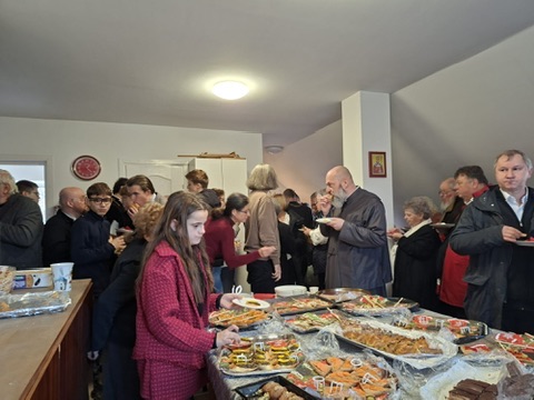 Vor der Entlassung dankte Seine Eminenz dem pfarreiverantwortlichen Priester, Vater Robert Szentimre, für das bedeutende pastorale Werk, das er leistet, sowie für seine Fürsorge bei der Verschönerung und Ikonographie der Kirche. Es folgte ein festliches Mahl in den Räumlichkeiten der Pfarrei, bei dem Seine Eminenz und die Bischöfe die Gelegenheit hatten, mit den Gläubigen ins Gespräch zu kommen.