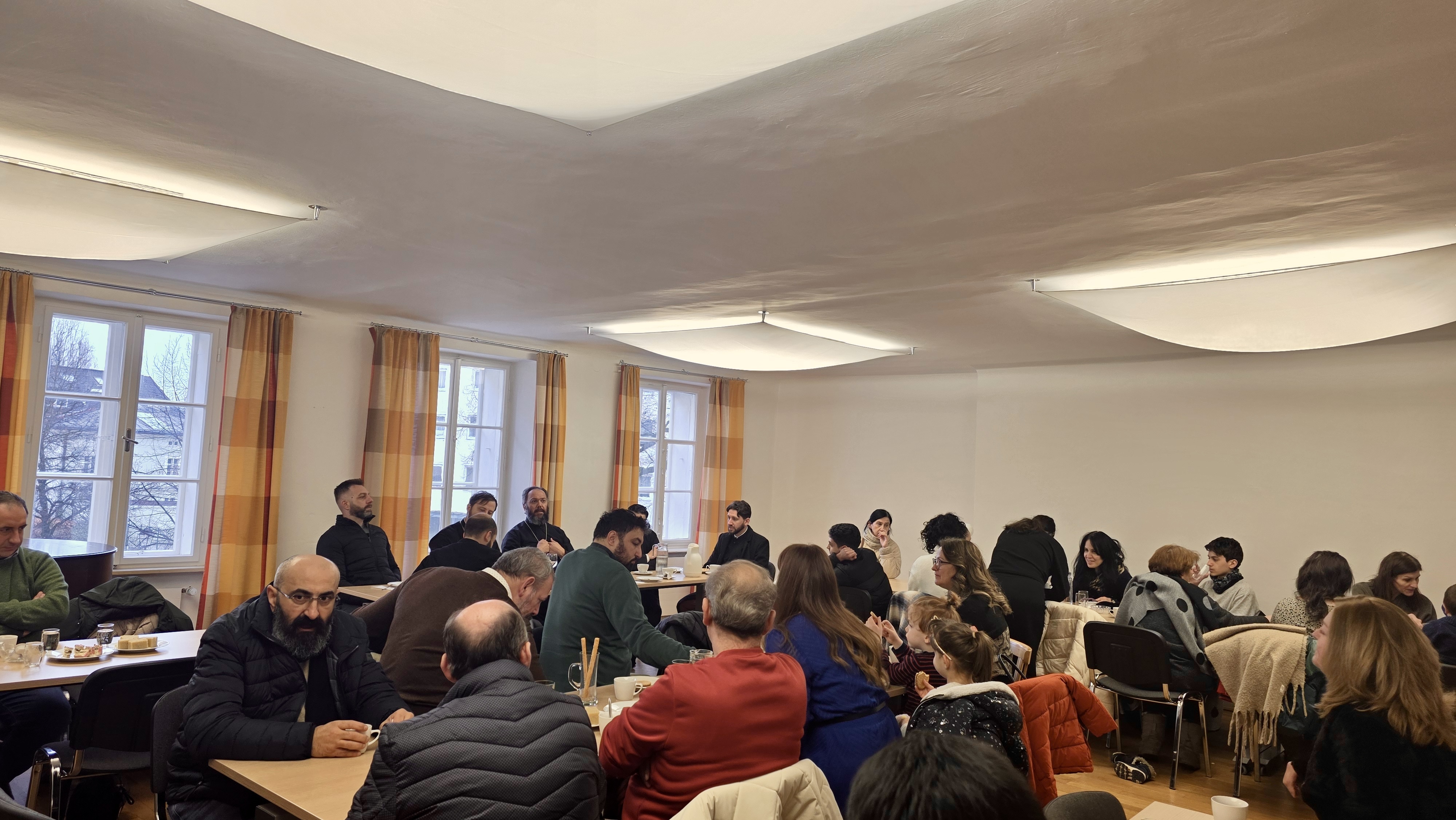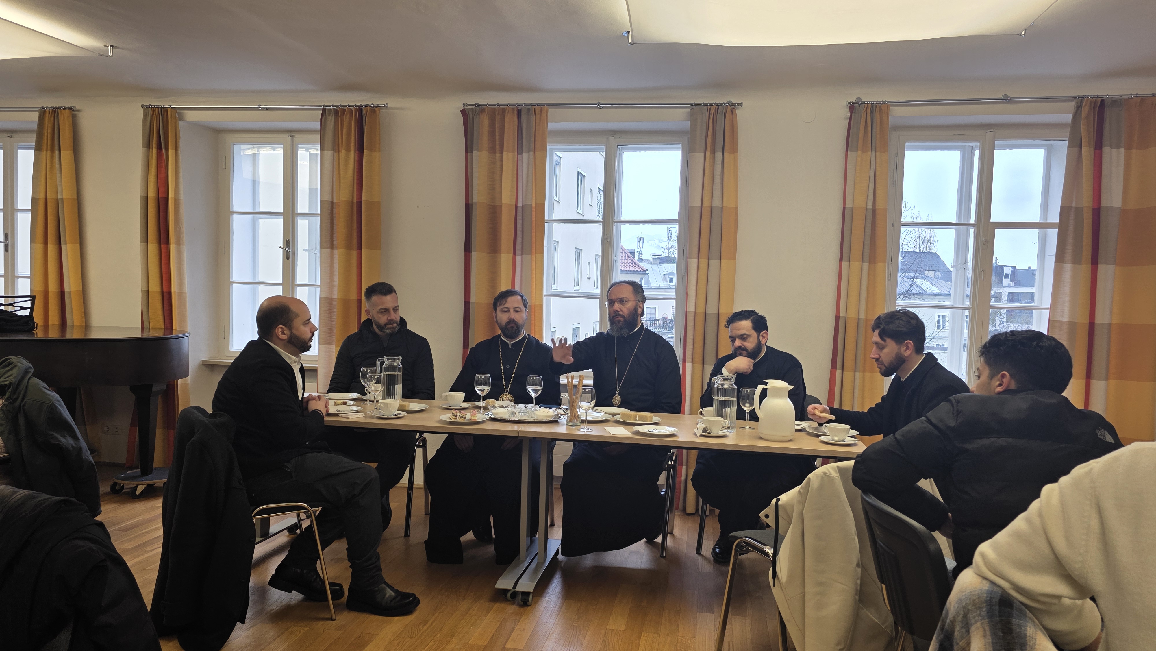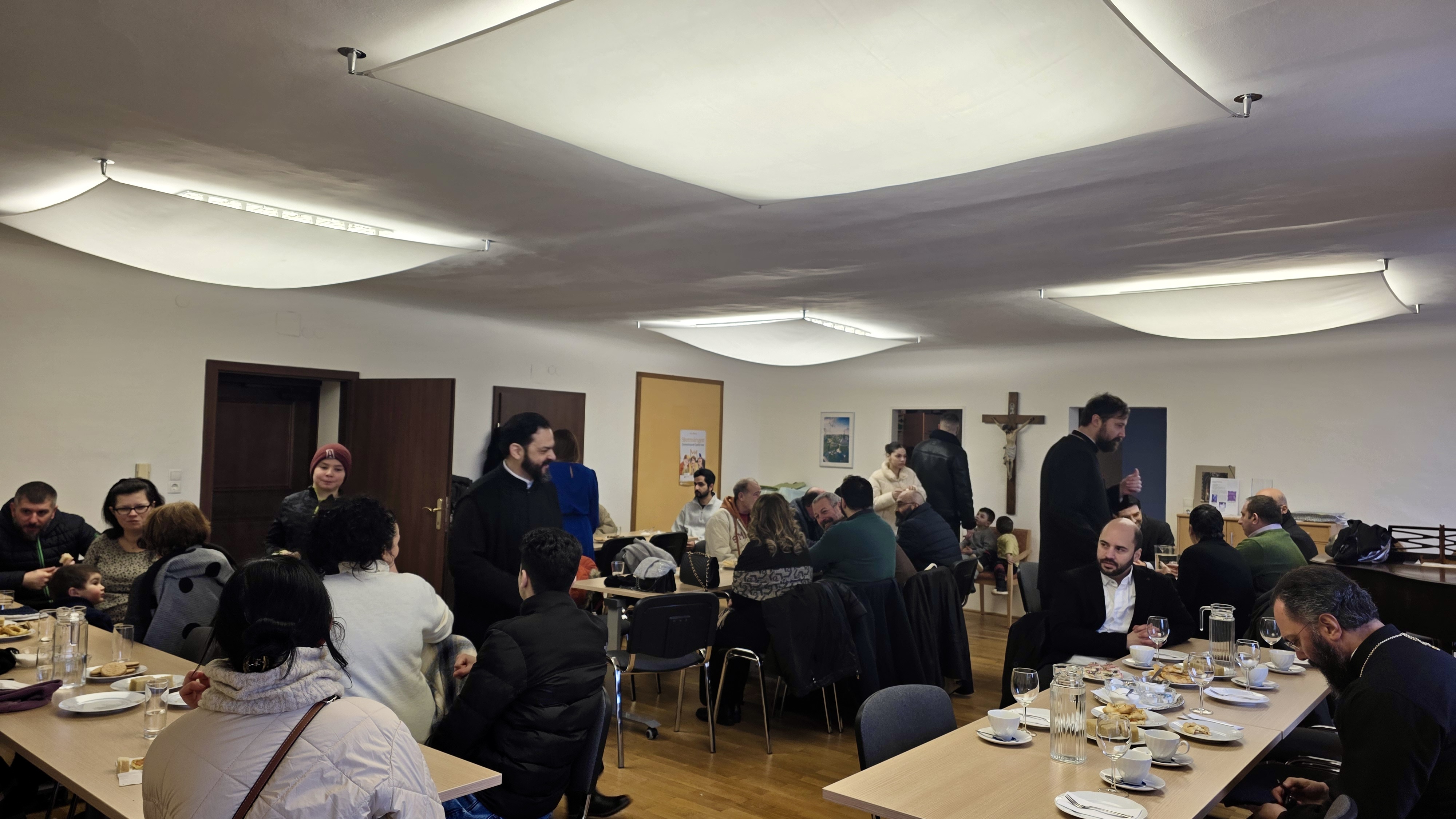 Im Anschluss an die Göttliche Liturgie fand die traditionelle Agape im Pfarrsaal statt, bei der ein geistlicher Austausch geführt wurde. Seine Eminenz hatte Gelegenheit, mit den Klerikern und Gläubigen über Fragen der Gemeinde und aktuelle Themen zu sprechen. Gemeinsam mit Seiner Exzellenz Bischof Maximus von Aristi wünschte er allen eine gesegnete und fruchtbringende Heilige und Große Fastenzeit.
