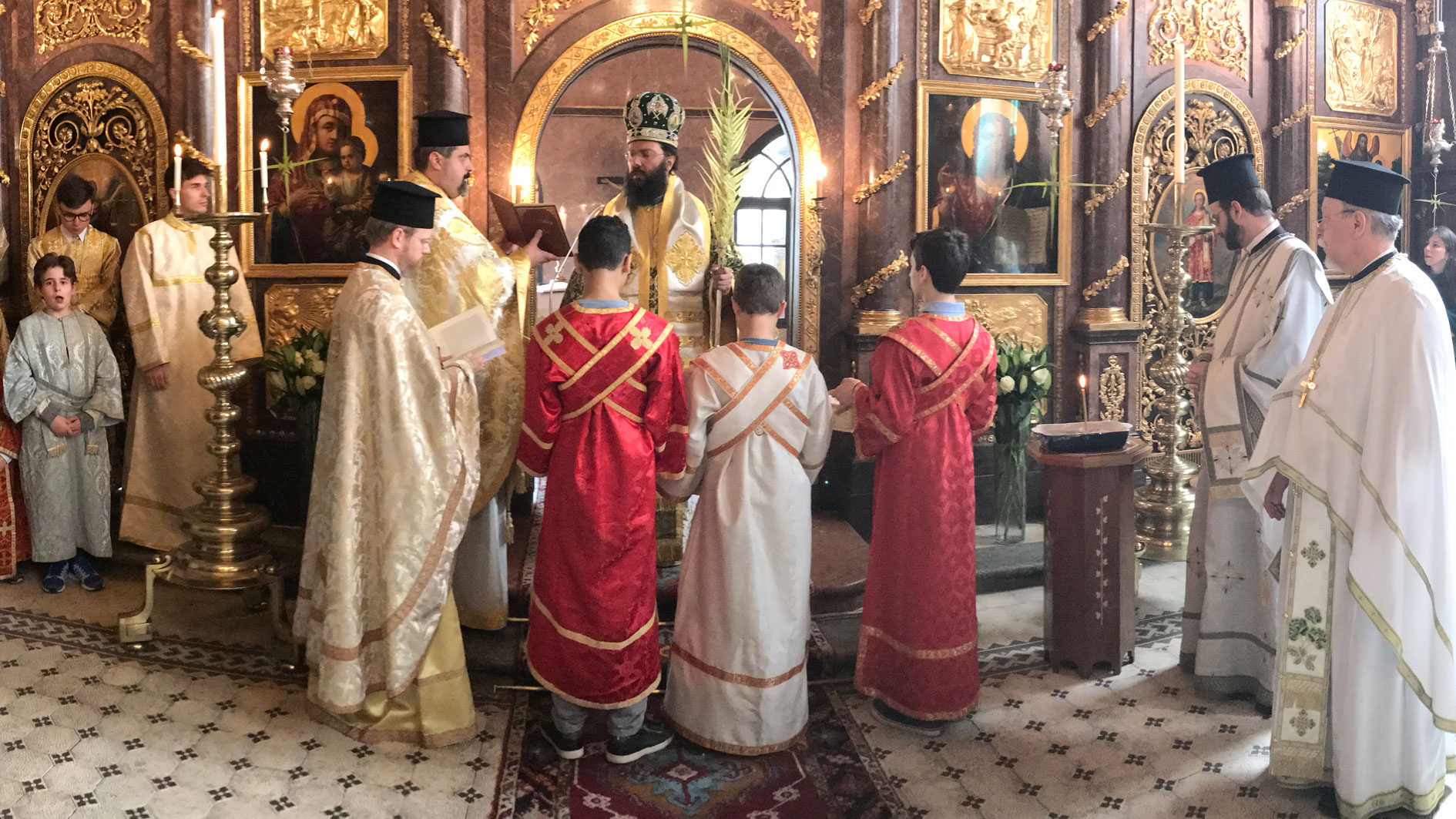 Am Palmsonntag, 9. April 2017, stand Metropolit Arsenios der Göttlichen Liturgie des Festes in der Kirche zum Hl. Georg in Wien vor. Mit ihm zelebrierten der Bischofsvikar und Erzpriester des Ökumenischen Thrones P. Ioannis Nikolitsis, Erzpriester P. Alexander Lapin, Priester P. Nikolaus Rappert und Erzdiakon P. Athanasius.
