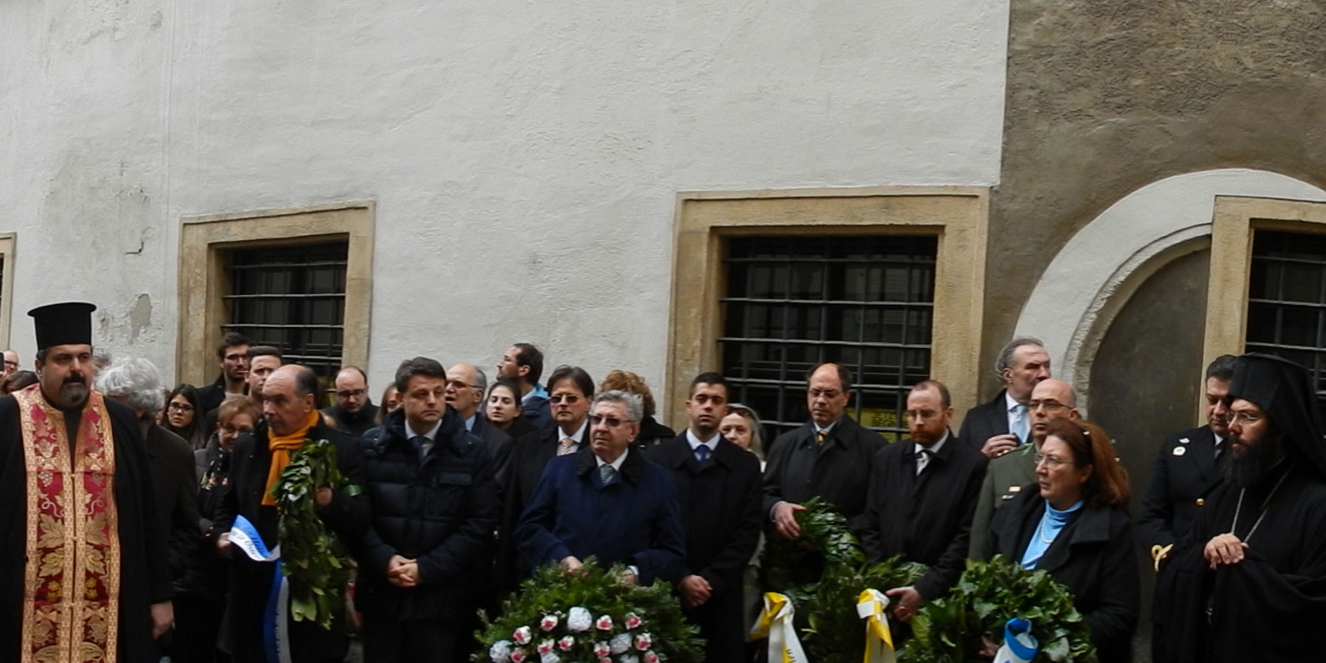 Anschließend erfolgt, wie jedes Jahr, die Kranzniederlegung an der Gedenktafel von Rigas Velestinlis am Eingang der Kirche des Heiligen Georg in Wien.