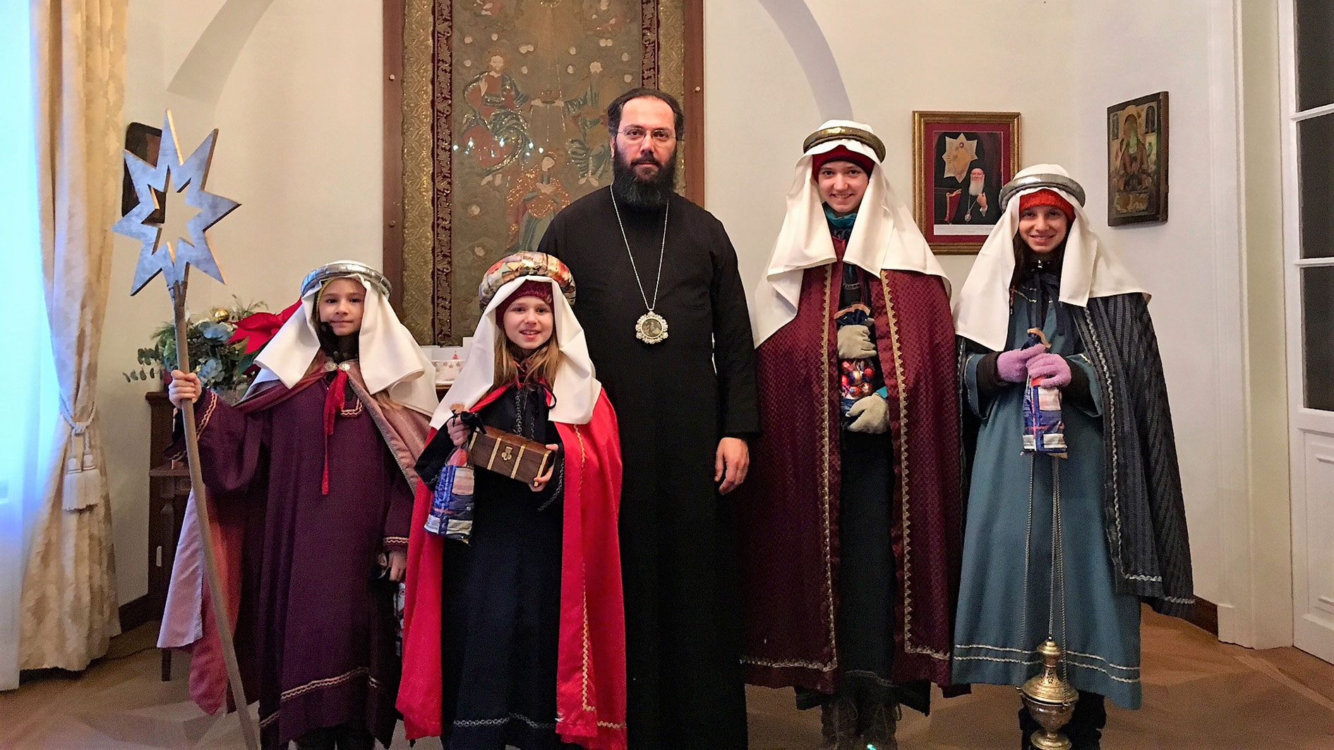 Am Freitag, 29. Dezember 2017, besuchten die Sternsinger die Metropolis von Austria, um wie jedes Jahr dem Metropoliten Weihnachtsgrüße zu überbringen, Weihnachtslieder zu singen und Geld für karitative Projekte zu sammeln. Metropolit Arsenios dankte den Sternsingern für Ihren Besuch und lobte Ihre Bereitschaft und Motivation, die freudige Botschaft der Geburt Christi in die Häuser der Menschen zu tragen. Er betonte, wie wichtig es sei, dass die Menschen durch das praktische Beispiel der Christen die christliche Nächstenliebe und die Liebe Christi im Alltag erfahren können. Er wünschte den Besuchern und ihren Familien ein frohes und gesegnetes neues Jahr, Gottes reichen Segen und Beistand und weiterhin viel Erfolg und Freude in ihren guten Werken.