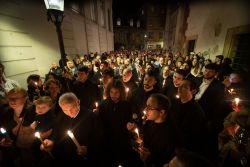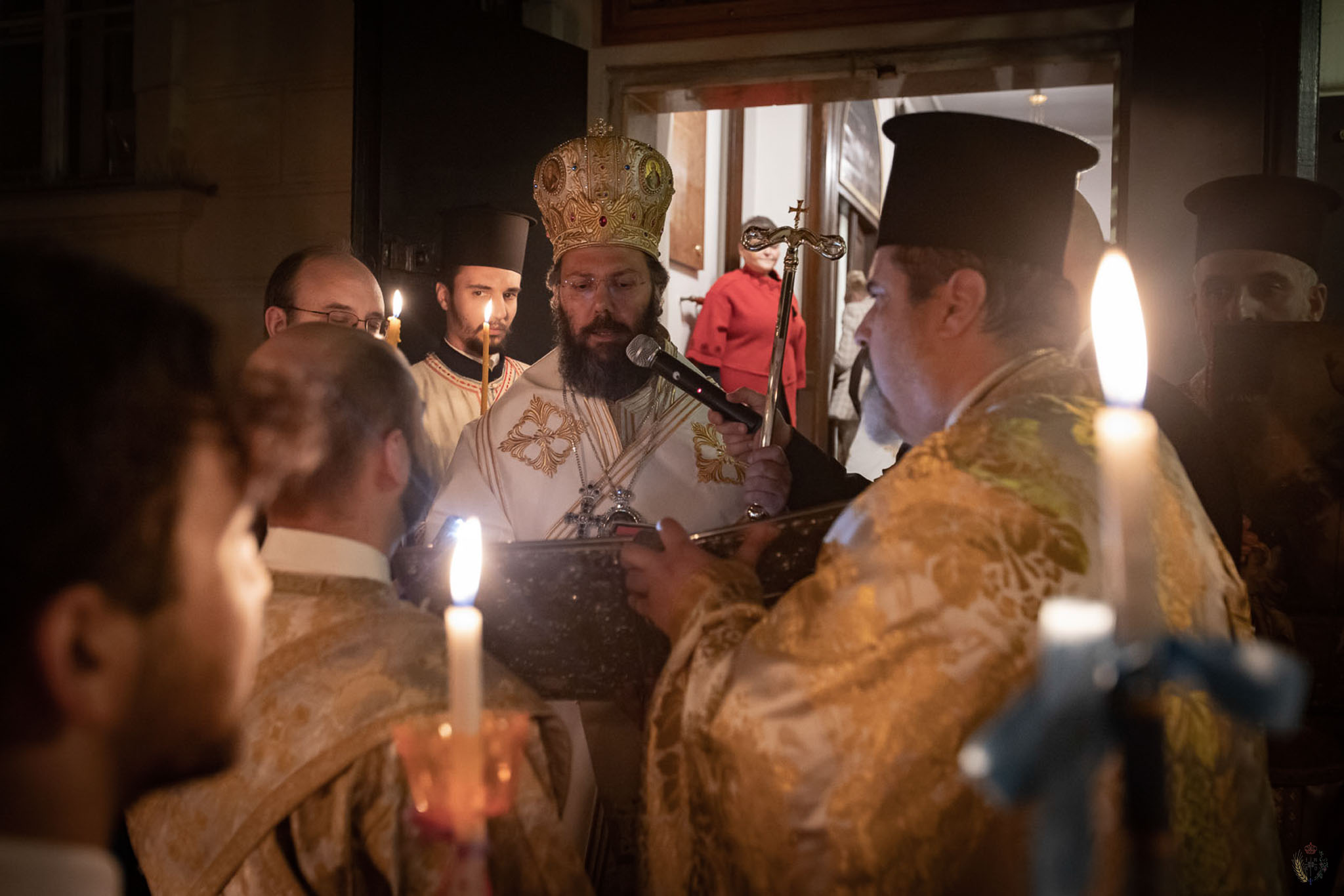 Die frohe Botschaft von der Auferstehung des menschgewordenen Wortes Gottes hat auch in diesem Jahr alle Gemeinden der Heiligen Metropolis von Austria und des Exarchats von Ungarn erreicht, die im Rahmen ihrer Möglichkeiten das Osterfest feierlich begangen haben. Die Zeremonien wurden in griechischer, ukrainischer, deutscher und ungarischer Sprache abgehalten und von zahlreichen Gläubigen besucht. Während der Zeremonien des Bräutigams stand Seine Eminenz Metropolit Arsenios von Austria und Exarch von Ungarn vor und die Gottesdienste leitete Generalvikar Archimandrit Maximos Rudko, begleitet vom Gemeindevorstehenden Bischofsvikar Erzpresbyter des Ökumenischen Thrones Ioannis Nikolitsis, Presbyter Aristeides Ganosis und vom Erzdiakon Erasmus Brankovski. An der Zeremonie des Bräutigams in den folgenden zwei Tagen nahmen in Abwechselung die Archimandriten Athanasius Buk und Bartholomäus Ungureanu teil, welche die deutschsprachige Gemeinde des Heiligen Chrysostomos liturgisch bedient haben. Die Schriftlesungen aus den Evangelien und dem Alten Testament und ihre Auslegung in den Hymnen trugen zur Ergriffenheit der Gläubigen bei, obwohl die Gottesdienste für die orthodoxen Christinnen und Christen in Österreich an Werktagen stattfinden. Der Höhepunkt der Zeremonien der ersten drei Tage war das Singen des Idiomelon von Kassiani vor der Ikone des Bräutigams. Am Heiligen und Hohen Mittwoch wurden die Zeremonie der Fußwaschung mit anschließender Großer Ölweihe gefeiert, sodass auch zahlreiche Erwerbstätige aus ganz Wien und ihrer Umgebung daran teilnehmen und den Segen der Kirche empfangen können. Die täglichen Liturgien der vorgeweihten Gaben in der Kapelle des Heiligen Chrysostomos waren auch gut besucht.
