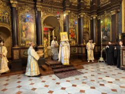 Am Sonntag, dem 5. Mai 2024, wurde die Vesper der Liebe in der Kathedrale zur Heiligen Dreifaltigkeit zelebreit, wo Seine Eminenz Metropolit Arsenios von Austria vorstand. Dem Metropoliten begleiteten Generalvikar Maximos, Ökonom des Klosters Iakovos, Bischofsvikar Ioannis, Ökonom Alexander Lapin, Presbyter Aristeidis und Erzdiakon Erasmus. Neben den Gläubigen war auch die Bruderschaft des Klosters Schutz der Allerheiligsten Gottesgebärerin und des Heiligen Paisios vom Berg Athos anwesend. Gemäß der Ordnung der Kirche wurde das Evangelium mit der Botschaft der Auferstehung auf Griechisch, Deutsch, Serbisch, Ukrainisch, Homerisch, Rumänisch, Russisch, Polnisch, Arabisch, Tschechisch und Slowakisch.