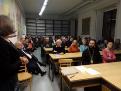 In der anschließenden Diskussion zum Vortrag offenbarte sich das große Interesse umso mehr. Metropolit Arsenios dankte Frau Professor Stassinopoulou und ihren Mitarbeitern für diese wichtige Initiative und den Elan in der Erforschung der Geschichte der Wiener Griechen. Er betonte, dass die Wiener Griechen nicht nur in der Vergangenheit einen großen Beitrag für die österreichische Gesellschaft geleistet haben, sondern auch das Potential haben, Wichtiges auch in Zukunft beizutragen. Frau Professor Stassinopoulou zeigte sich dankbar für die erwiesene Unterstützung durch die Metropolis von Austria und die beiden Kirchengemeinden. Sie stellte ebenfalls fest, dass das Potential eines zukünftigen Beitrages der Wiener Griechen gegeben ist und betonte, dass das Projekt durch österreichische Geldmittel getragen wird, dass jedoch auch Griechenland in der Person eines Praktikanten einen wichtigen Beitrag für das besagte Projekt leistet.